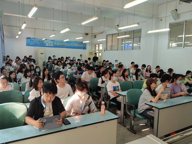 此次宣讲会介绍了中建商品混凝土有限公司的发展历程、企业文化、岗位职责、薪资待遇和发展平台等,并与现场的同学们积极交流互动,让同学们全面了解中建商品混凝土有限公司。