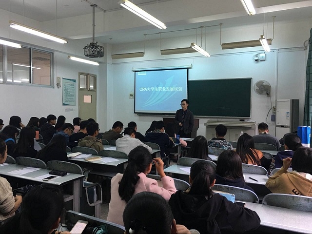 11月15日下午两点,球盟会在教1-211举办关于CPA专业职业发展规划的讲座。主讲嘉宾为高顿财经经理,曾就职于四大会计师事务所,已取得注册会计师(CPA)证书的梁老师。讲座由就业专职老师黄晗主持。