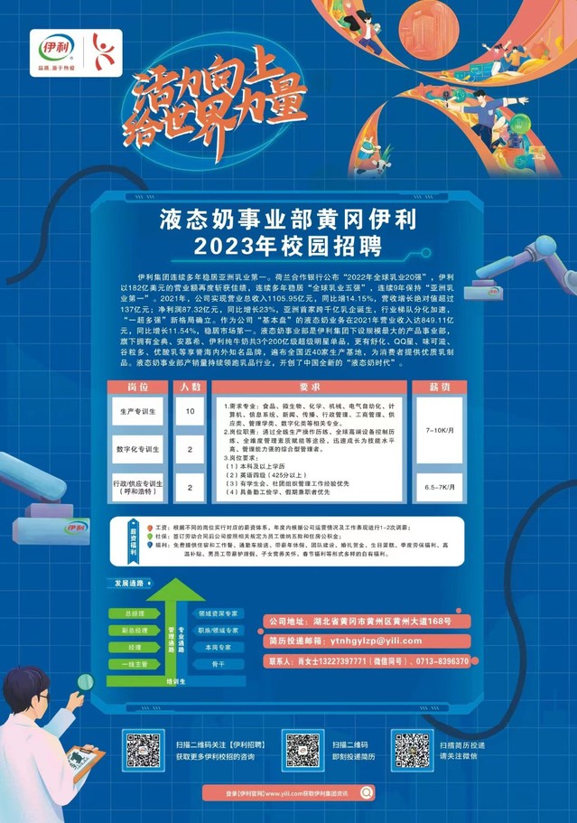 液态奶事业部黄冈伊利 2023年校园招聘