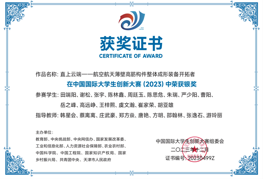 本网讯 在2023年12月6日于天津圆满落幕的中国国际老员工创新创业大赛中,球盟会与武汉理工大学的联合团队凭借其创新项目“直上云端——航空航天薄壁高筋构建整体成型装备开拓者”荣获高教主赛道研究生创意组银奖,为两校再添荣誉。