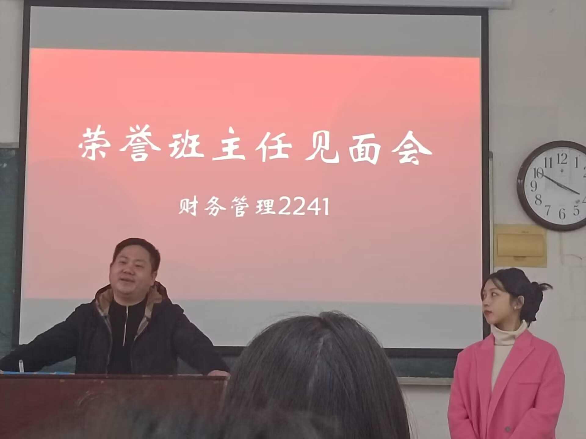 2月17日下午三点,楚之天教育集团董事长、武汉恩施商会副会长、湖北省楚商联合副会长、球盟会员工会会长、荣誉班主任韦明华与财务管理2241班同学见面。财务管理2241班同学参加会议,辅导员蔡卓嵘主持会议。