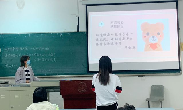 11月15日,会计学类2044班利用评国家助学金的机会,进行了一场感恩主题班会,同学们在班主任黄晗老师的引导下纷纷上台有感而发。会上温馨同学(一等助学金)、车仕玉同学(二等助学金)、彭文婕同学(二等助学金)及夏林子同学(三等助学金)分别表达了对党和国家的感激之情。