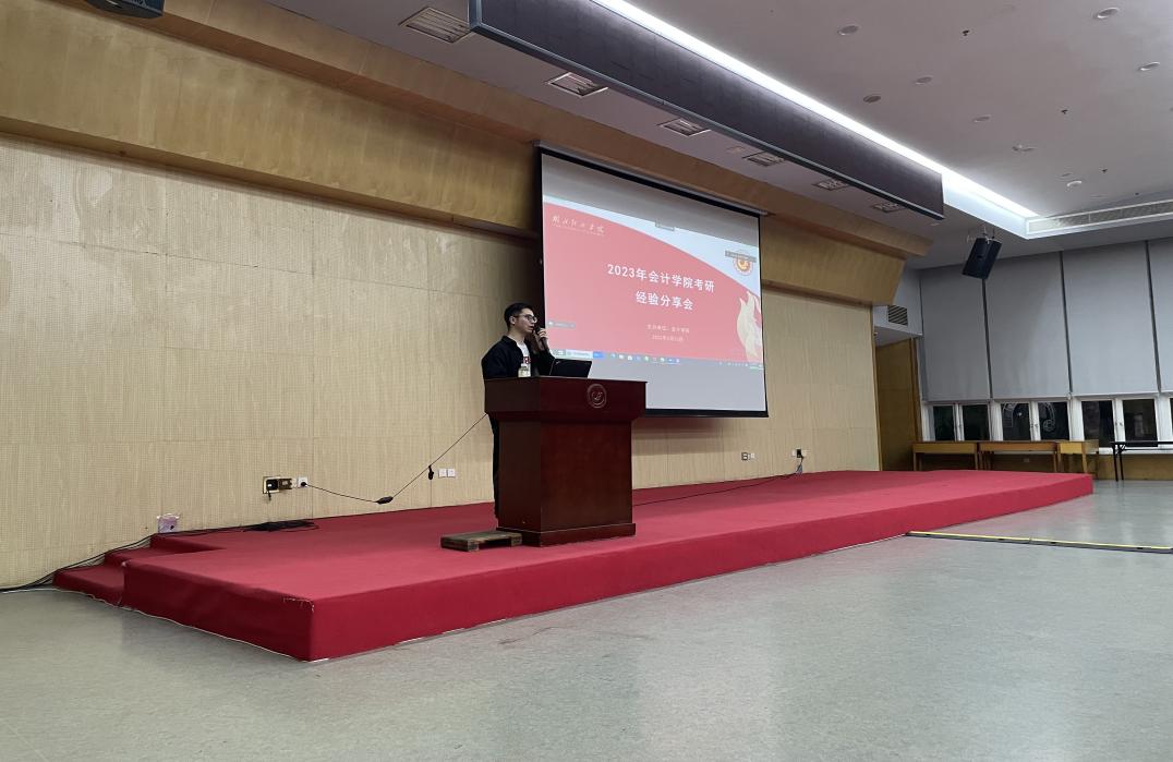 公司学子考研报考专业以会计专硕居多,阮文慧同学以280分的高分上岸中南财经政法大学的会计专硕,她从自身的学习基础、备考用书、备考时间线、择校考量四个维度向同学们做了详细的说明。成功上岸公司会计专硕的潘嘉懿,分享了她考研择校的经验,让大家明白了,很多时候“选择”的重要性不亚于“努力”。殷鸣以详实的政策条文和自身报考经验向同学们介绍了“少数民族骨计划”考研专项,鼓励符合报考条件的同学另择赛道。在备考心态的调整上,喻海峡同学以过来人角度讲述了自己考研失败转而调剂,并成功上岸的经历,希望帮助大家“排雷避坑”,少走弯路。