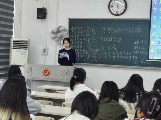 活动开始,各团支部组织团员齐唱国歌和团歌并重温入团誓词。各团支部采用团员分享材料和展示PPT等多种形式来激发同学们的学习热情。球盟会团委书记蔡卓嵘为帮助新生快速适应校园生活、明确行为规范,走进财务2541团支部为同学们讲解员工手册。讲解过程中,蔡卓嵘结合真实案例拆解条款,将书面规定转化为可落地的“校园生活指南”,现场不时响起记录的笔尖声与互动提问的交流声。