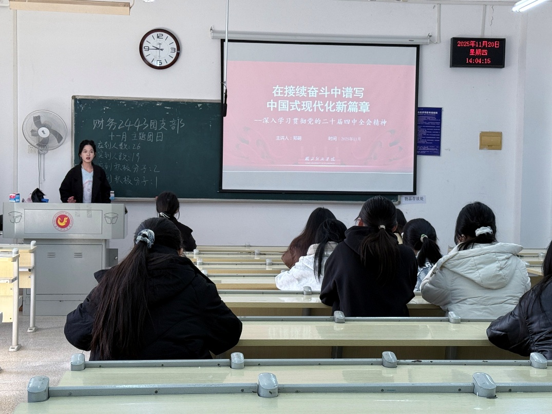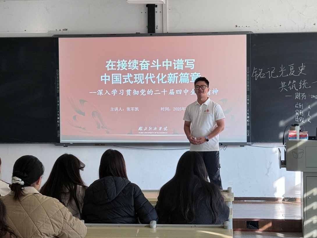 “经叹号”宣讲队队员郑萌、张军凯和孙凌轩分别走进财务2443团支部、财务2442团支部和审计2442团支部进行主题团日宣讲,他们以“在接续奋斗中谱写中国式现代化新篇章”和“赓续英雄血脉,勇担青春使命”为主题,强调各团员应该明确六大原则、七个目标、十二个部署,挺膺担当新时代青年思想铸魂、能力提升、行动担当的使命与责任,还要学习英雄精神,将爱国情怀与奋斗担当融入时代征程,贡献青春力量。