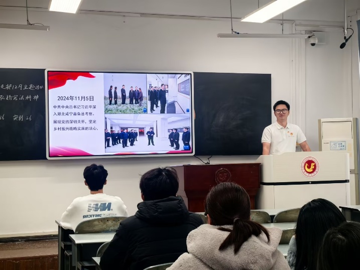 “经叹号”宣讲队队员张军凯、黄菲雪分别走进会计2544团支部与会计实验2441团支部,开展“乡村振兴”主题团日宣讲。他们结合科技赋能农业、促进乡村经济发展的生动案例,展现新时代科技创新如何助力乡村振兴、提升农村居民生活水平。宣讲进一步激发了老员工投身乡村建设的热情,鼓励大家为社会发展贡献青春力量。