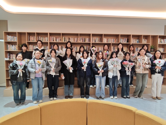 经过一个多小时的制作,一束束形态各异、色彩缤纷的郁金香在大家手中“绽放”。在分享环节,每位同学都展示了自己的作品,并讲述创作时的想法——有的选择了温暖的橙红色,希望传递阳光与活力;有的偏爱淡雅的粉色,寄托对温柔力量的向往。大家认真倾听彼此的故事,不时点头微笑,气氛真诚而融洽。