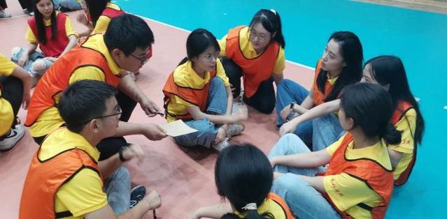 活动伊始,教练带领大家进行了一系列热身活动。随后,进入分队环节,三支队伍各自选择队名、口号以及队伍造型。队伍之间首先进行了“蛟龙出海”比赛,队伍成员用绑腿绳将脚连在一块,横向一排,通过指定路线,用最短时间从起点到达终点,考验队员之间的协调性和默契度。接下来进入“驿站传书”环节,每组组员作为一个驿站,用非语言方式依次传递密码,传递最准确的队伍获胜,旨在通过沟通体验让成员认知沟通与执行的重要性。