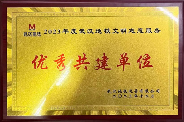 武汉地铁根据各合作共建单位服务态度以及服务志愿总时长综合进行排名,公司青协以1023.50h志愿时长的优异成绩从各共建单位中脱颖而出,最终斩获优秀共建单位奖项。