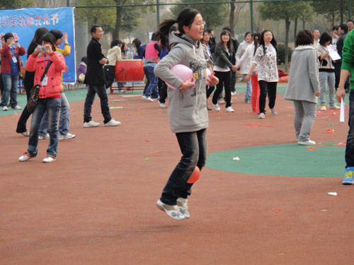 随着“咚咚”的敲鼓声,热身赛——跳绳比赛正式拉开帷幕。大一八个班被分成四组,每班选派8人参加(女生6人,男生2人)。摇绳两人面对面站立,手持一条长绳同时按逆时针方向摇动,队员一一跳过摇动的长绳,依次循环,以跳跃成功次数多少排出名次,比赛时间为两分钟。比赛刚开始,有些队员还不太适应摇动的长绳,摇绳有几次中断,但随着比赛的进行,队员们增强了自信,个个变得身轻如燕,以轻盈的步伐跳过长绳,摇绳者和队员们配合也更加默契,比赛渐入佳境。场上观众的眼神也跟随着跳绳晃动,齐心协力的为各自班级加油。激烈角逐过后,成绩遂见分晓。审计Q1041班力夺跳绳比赛第一名,注会Q1042班和会计Q1041班分列第二和第三名。 接下来拔河比赛紧锣密鼓的上演,各班级选派20名员工参加(男生5名,女生15名),所有班级同样被分为四组,进行淘汰赛,最后荣获第一名的班级将得到奖状和小礼品。当裁判一声“准备”,两边队员们都各就各位,身体后倾,双脚前后站定,目光聚焦在绳中间的绿色系带上。“开始”过后,会计Q1042班的队员们都涨红了脸,卯足了劲,一点点将绳朝着自己这方移动,可对方也毫不示弱,双方僵持不下。观众们越发热烈的呐喊助威,一时场上气氛异常高涨。对手稍一分神,胜利的天枰就倾向了会计Q1042班,力克注会Q1041班。几轮下来,比赛结果尘埃落定。注会Q1042班占领冠军宝座,会计Q1042班以亚军屈居第二。 这时轮到了各个班级自由游戏时间,每个班级都分配了一个小游戏,旨在加强班级内部间的团结协作能力。瞧!财务Q1041班的同学们手拉手围成一个大圆圈,开始进行“桃花朵朵开”的游戏,主持人“3朵开”的话音刚落,同学们便立即松开手,三个三个的抱在一起。会计Q1041班开展“企鹅漫步”,参赛者在两腿间,双臂下各夹一个气球,呈企鹅状在跑道上行走。同学们滑稽的步伐引来阵阵欢笑,大家都深深的感受到游戏的妙趣横生。注会Q1042班的“踩气球”也十分精彩,各班的游戏都各具特色,夺人眼球。 快乐的游戏时间总是短暂的,但愉悦的发自内心的欢笑却久久飘荡在篮球场上空。最后的清场工作也由球盟会院青协的同学们友情帮助,更添一份感动。 今天所有的参赛者不仅体验到游戏的乐趣,更多的感受到的是集体的团结与荣誉感,同时将球盟会这个大家庭中每一员的心紧紧凝聚在一起,充分发扬了“友谊第一,比赛第二”的精神。头炮成功打响,相信接下来的“‘会’乐系列活动”将会越发精彩,引人期待万分!