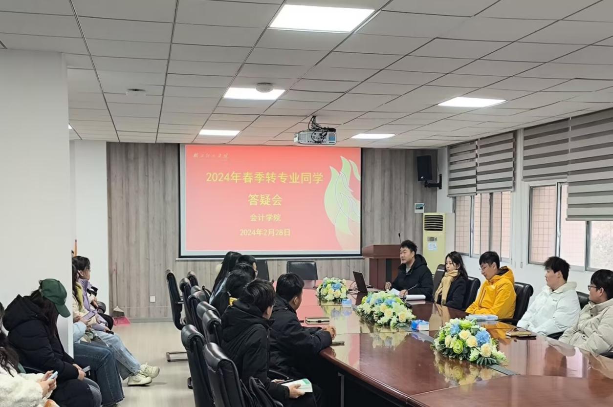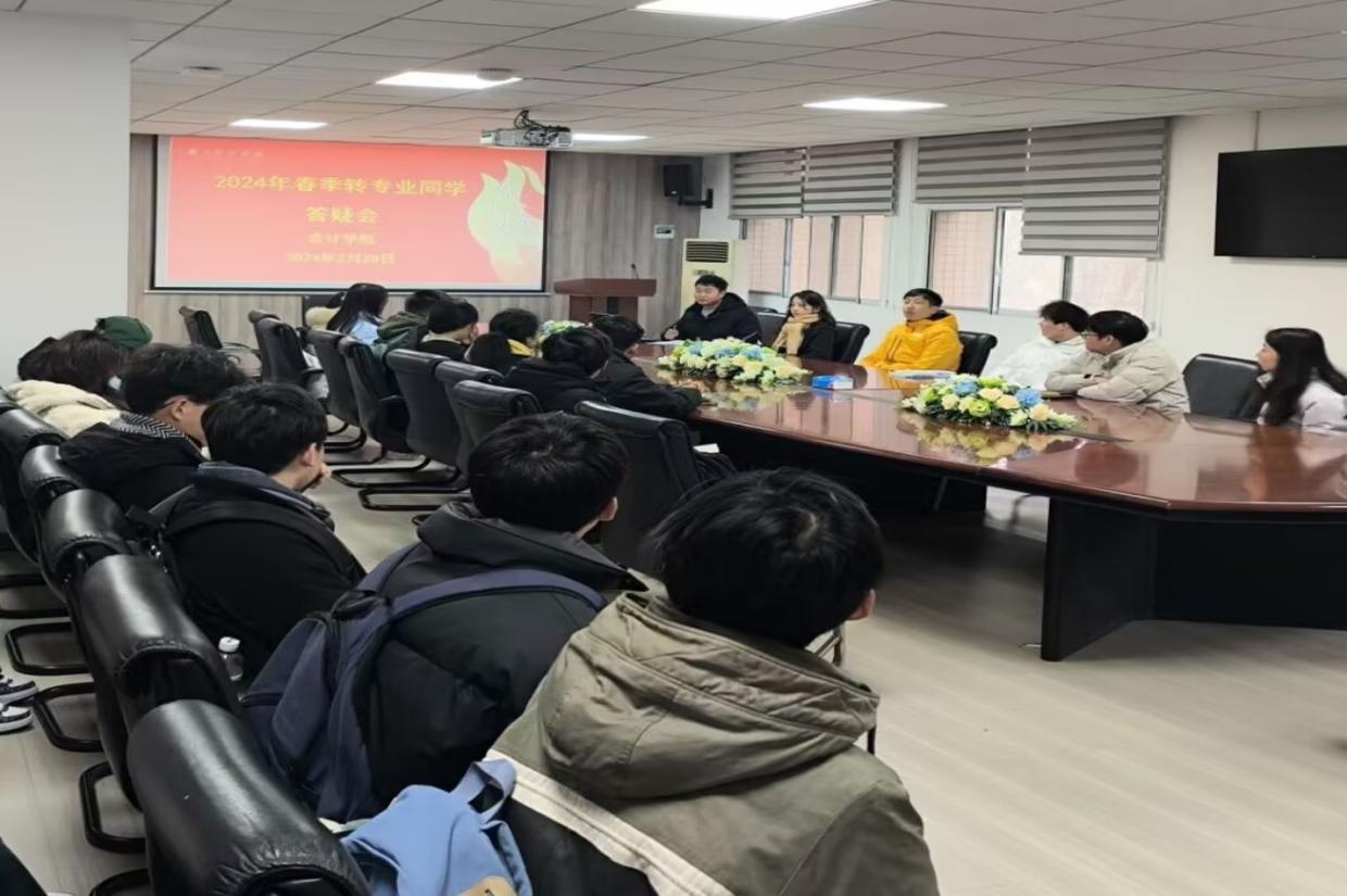 会议伊始,柯友清老师向转专业的同学详细介绍了公司的发展状况、专业设置等,并对成功转入会计公司的员工表示热烈欢迎。在答疑环节,员工们踊跃提问,问题涉及转专业的后的学分转换、毕业要求等多个方面。刘红俊老师耐心解答,确保每位员工都能清晰理解学分转换、补修和免修的每一个细节。蔡卓嵘老师给转专业同学详细了介绍了公司员工会的设置情况和各部门的职能,热情的解答了同学们关于学科竞赛、宿舍调整等方面的疑问。