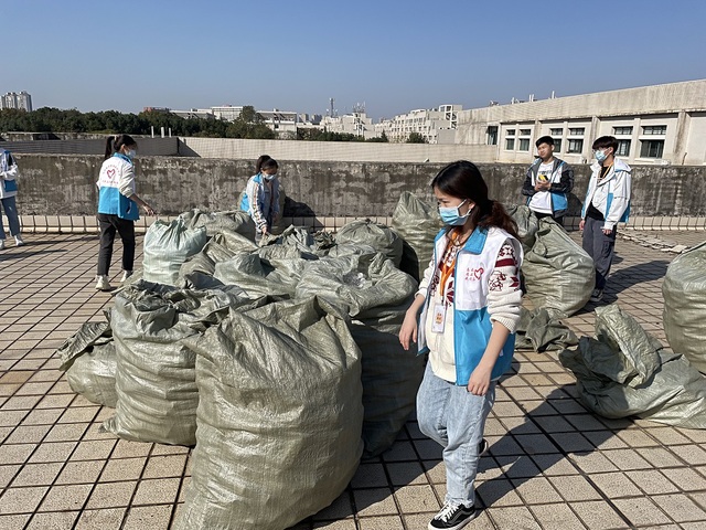 该活动从准备到验收持续一个多月,自2021年10月上旬起,会院青协的志愿者们便积极投入活动筹备中,在公司的各个角落都能发现他们收集塑料瓶的身影。除此之外,他们还带动身边同学一起参与到此次活动中,身体力行,将环保融入生活。11月11日,青协成员们在一粟堂门口设立活动点,并设计了精美的海报,以更加直观的方式向大家展现活动内容及理念,鼓励同学们为活动开展捐献塑料瓶。同学们还可以在活动点处凭借塑料瓶兑换小礼品,在提高大家参与活动积极性的同时,提升了同学们的环保意识。11月13日,青协成员们对塑料瓶进行分类整理并将物资搬运至中兴广场,由宣传部进行地板绘图后,经过全体成员四个小时的共同努力,终于为这次活动画上了圆满句号。