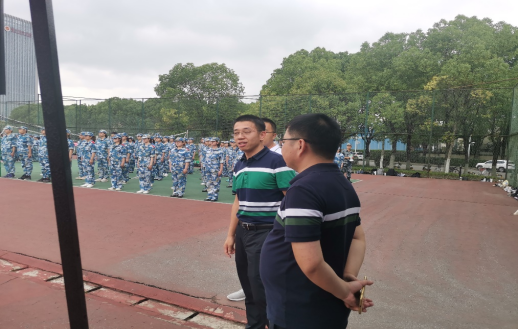 王友刚书记与在场的免训员工进行了交流,告诉员工要做好场边的后勤保障工作,积极为同学们和教官们服务。随后在场边观看各方阵的训练情况,并向公司退伍员工教官金文琪了解训练的基本流程和期间遇到的困难。金文琪教官表示,同学们都很有毅力,天气炎热但同学们都咬牙坚持,训练过程比较顺利。