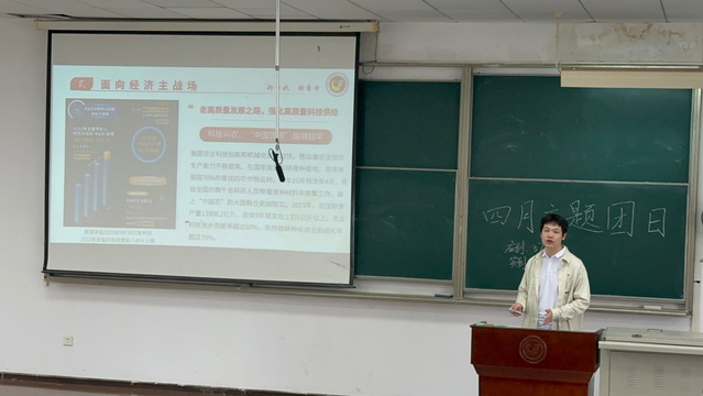 活动开始前,各团支部组织团员齐唱国歌和团歌并重温入团誓词。各团支部采用了邀请“经叹号”宣讲队进支部、团员朗读材料、播放视频等多种形式来激发同学们的学习、参与热情,引导同学们深入思考。在“经叹号”青年宣讲队进支部环节,宣讲员姜普京同学进入ACCA2341团支部进行宣讲。姜同学围绕新财经教育改革的大背景、新时代财经人才发展要求,提出作为新青年要坚持习近平总书记的“四个面向”,即“面向世界科技前沿”、“面向经济主战场”、“面向国家重大需求”、“面向人民生命健康”,从这四个方面对同学们未来的发展进行了分析。指出当前我们正处于实现中华民族伟大复兴的战略全局和百年未有之大变局的交汇期,我国的科技工作在历经不同时期的快速发展,从跟跑、并跑到现在站在了世界科技的前沿。呼吁同学们站在新的历史转折点,需要审时度势,凝聚新的战略驱动力、形成新的战略思维、创建新的科研模式、坚持有组织科研与自由探索并重,实现原创性、引领性的科技创新。