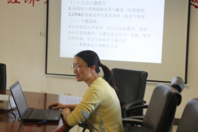 黄约老师解读了新预算法的五大突破和八个亮点,介绍了政府会计改革和《政府会计准则--基本准则》的相关内容。 刘迅老师介绍了内生性问题及其处理的常用方法,通过实例的演示,对这些方法的优缺点进行了简评。吕伶俐老师汇报了国际内部审计准则和注册会计师财务报表审计报告准则的最新动态,对参访的南京九洲财务会计咨询有限公司颇具特色的ERP系统进行了介绍,并简要分析了互联网+时代会计咨询行业面临的机遇和挑战。唐艳老师主要介绍了全国MPAcc行动学习团队培训暨教学研讨会的会议内容,并分享了一种较新的教学方法——奥墨教学法(ALMOSO)在管理会计课程教学中的应用。