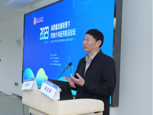 论坛主题报告环节由湖北会计发展研究中心主任许志勇和副主任张少勇主持。《中国管理科学》主编李建平教授、《管理科学学报》主任熊熊教授、《中国科技论坛》主编张九庆研究员分别以《多源数据视角下的财务欺诈风险分析方法》《过犹不及:加班工作与员工生产力》《从拉斯克奖颁奖和ChatGPT被诉看科技治理新动向》为题作大会主题报告。